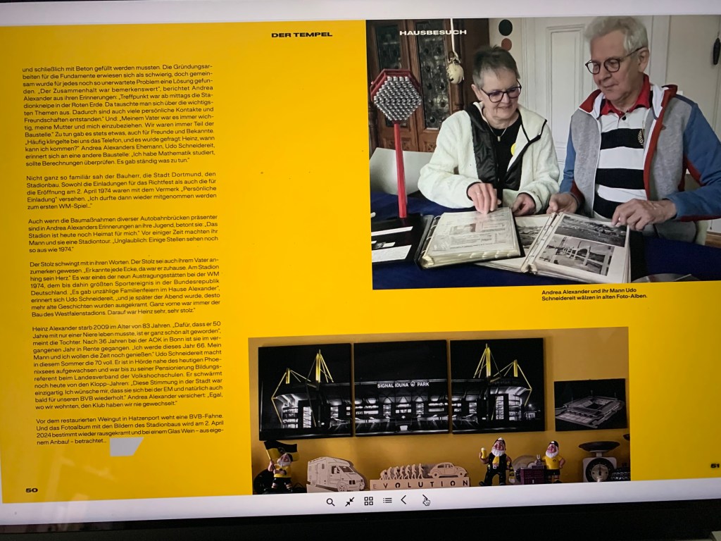 Wir durften auch an der Entstehung der BVB-Jubiläums-Ausgabe des Mitgliedermagazins mit Bildern und Berichten aus der Entstehungszeit des Stadions in der ersten Phase bis 1974 aktiv mitwirken. Das war sehr besonders: